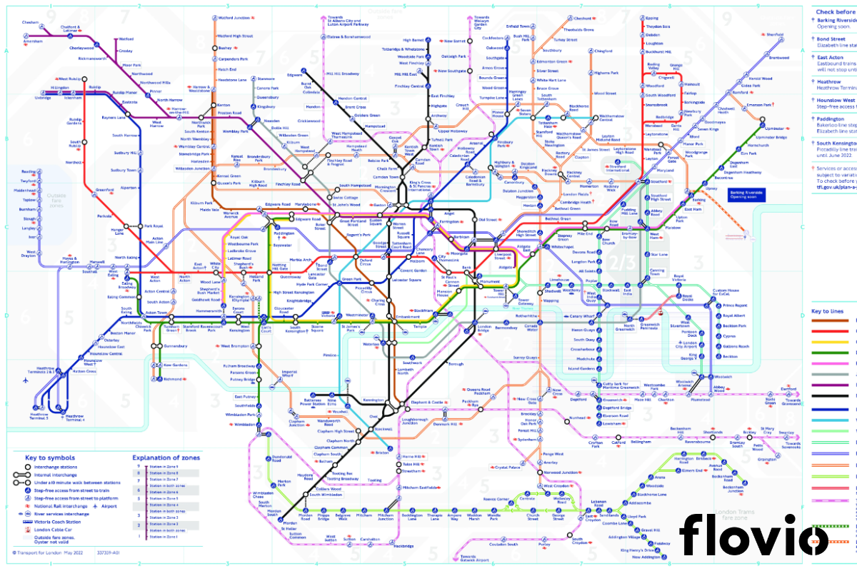Toinen kuva on pitkän kehityksen tulos: Lontoon monimutkaisen metroverkoston kartta. Vaikka kuva ei ole realistinen näkymä itse metrotunnelista, on se erittäin tarkka ja helposti ymmärrettävä kuvaus metron kulusta ja reiteistä – eli olennaisesta prosessista.